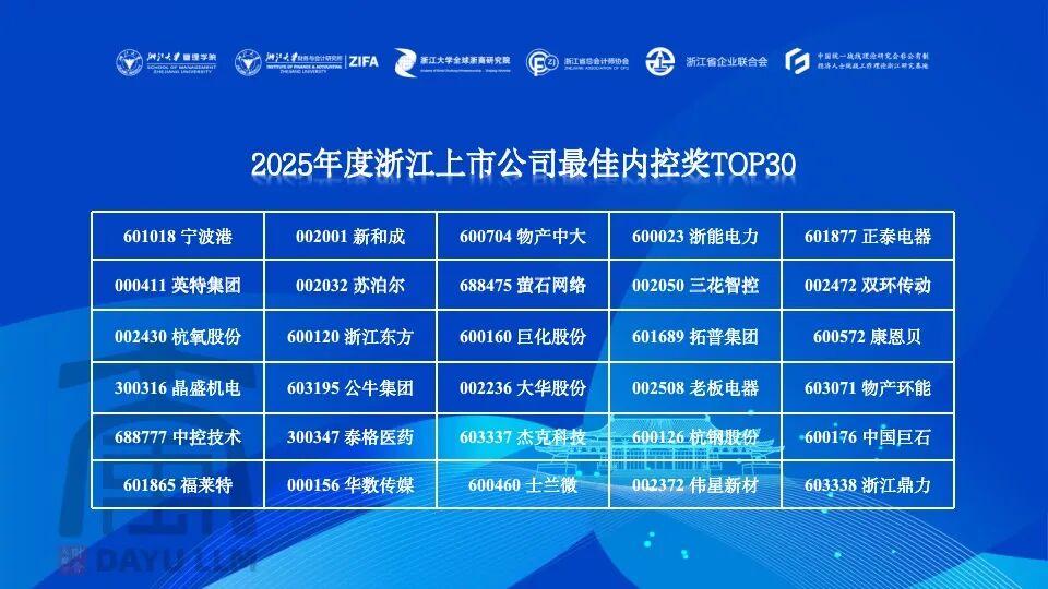 11月20日,第九屆企業(yè)高質(zhì)量發(fā)展與管理創(chuàng)新論壇在浙江大學(xué)舉辦,并揭曉2025年度浙江上市公司最佳內(nèi)控獎TOP30,新和成再次上榜,連續(xù)9年獲此殊榮。