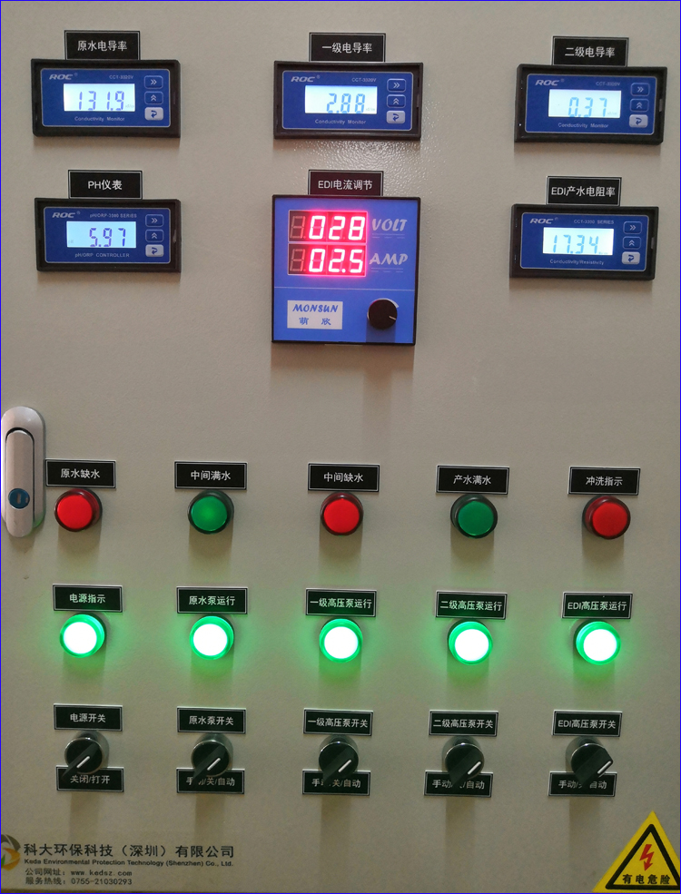 電阻率≥15MΩ·cm(常溫下25°C)預處理+二級RO+edi裝置
