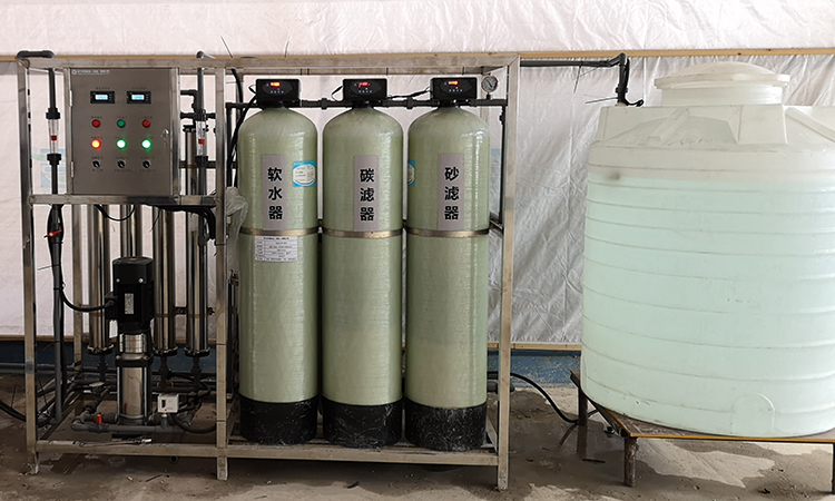 自來水---->原水箱---->供水泵---->多介質過濾器---->活性炭過濾器---->軟化過濾器---->保安過濾器---->高壓泵---->反滲透機組---->純水箱---->恒壓輸送系統---->用水點