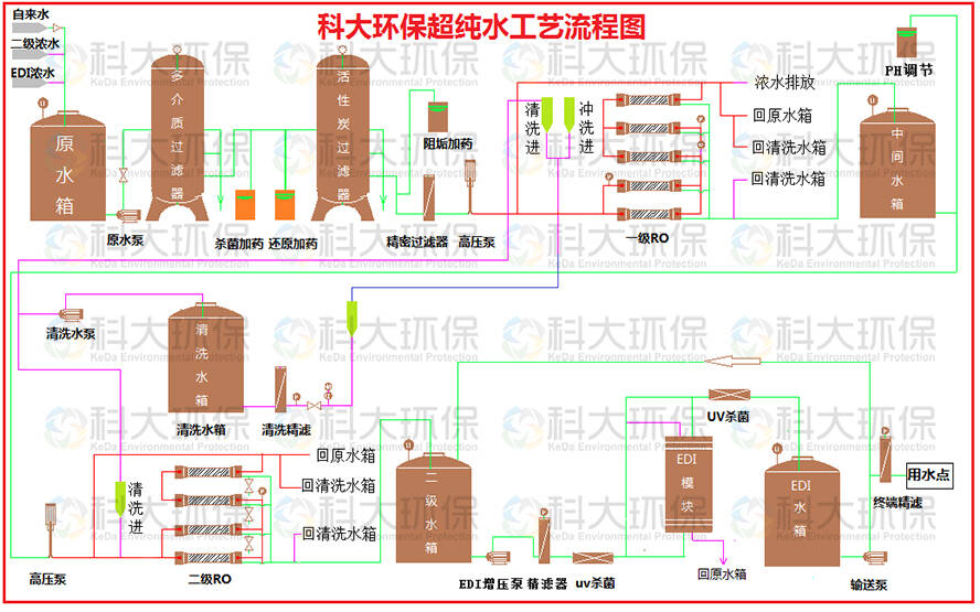 1、采用品牌反滲透(RO)膜純化裝置(孔徑萬分之一微米),運用國際上最先進的反滲透技術工藝制備純水。